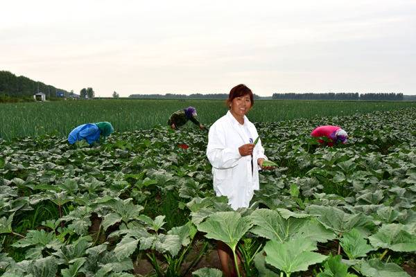 為了種出安全菜,讓居民吃上放心菜,韓曉燕全身心地打造這個(gè)集農(nóng)業(yè)采摘觀光、綠色有機(jī)瓜菜栽培、玉米高產(chǎn)創(chuàng)建等模式于一體的科技園區(qū)。圖為韓曉燕在豐收的秋葵地里查看。