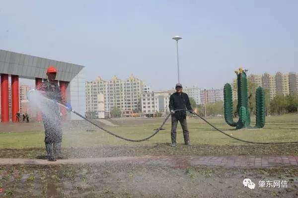 近日,肇東市園林工人正在對(duì)道路、公園、綠地等處的串紅、矮牽牛、孔雀草、萬壽菊等花卉進(jìn)行澆水養(yǎng)護(hù)。