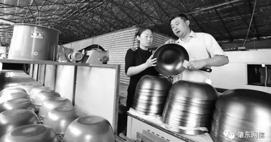 肇東市里木店鎮雙興村李木匠屯潘顯峰32歲時接過家里的鐵鍋小作坊,帶領10多名村民一起創業。歷經15年的打拼生意紅火。目前,累計投入2000多萬元。擁有自己鑄韻炊具有限公司和品牌。一年生產80多萬口鍋,產品銷往東三省。在廠里打工的60多名村民月均收入5000多元。圖為潘顯峰(右一)在向村民傳授檢查產品質量相關知識等。