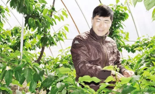 4月21日,肇東市蘇萌園林負責人姜大力正在查看大櫻桃掛果及長勢。預計大櫻桃5月中旬進入采摘季,每斤售價60元錢左右。采摘過后,樹下套種婆婆丁、刺五加、刺老芽等,實現單季采摘,復合種植。