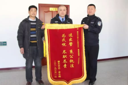 2019年3月1日,肇東市民李云峰來到市交警大隊,將一面寫有“速出警秉公執法,為民憂盡職盡責”的錦旗送給了黃慧斌和劉偉剛兩位警官,感謝他們不辭辛苦連續工作,還原事實真相,做出公正裁決,維護了法律的公平正義。