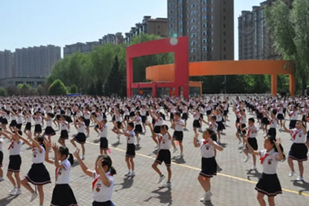 在認(rèn)真貫徹落實(shí)國(guó)家關(guān)于開(kāi)展陽(yáng)光體育運(yùn)動(dòng)要求的前提下,肇東市福源小學(xué)校本著“健康第一”的理念,積極響應(yīng)上級(jí)號(hào)召,以打造“活力福源、實(shí)力福源、魅力福源”為目標(biāo),廣泛開(kāi)展豐富多彩的校園陽(yáng)光體育系列活動(dòng),引導(dǎo)師生積極參加體育鍛煉,在全校掀起健身運(yùn)動(dòng)的熱潮。并結(jié)合小學(xué)生的運(yùn)動(dòng)特點(diǎn),在陽(yáng)光體育大課間重點(diǎn)推廣了古詩(shī)韻律操、繩操、特色跳繩、手語(yǔ)操《習(xí)主席寄語(yǔ)》等內(nèi)容。